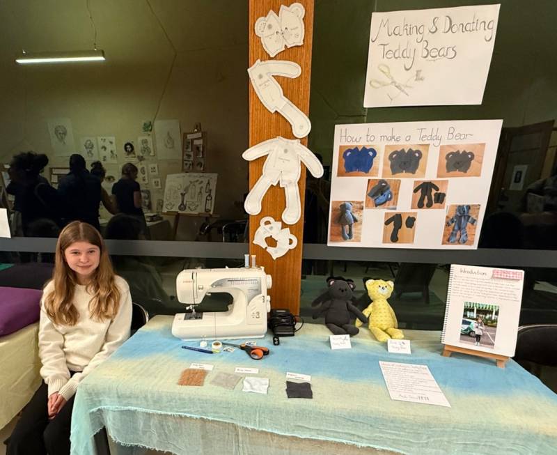 Emily, with only minimal sewing experience, set herself the ambitious task of sewing teddy bears to donate to the Royal Children’s Hospital. She independently contacted the hospital to check safety requirements and experimented with different ways to create eyes and noses without detachable parts. She trialled fabrics, refined her designs, and completed six teddy bears, which she donated to the hospital, while also displaying her prototypes at the exhibition.
