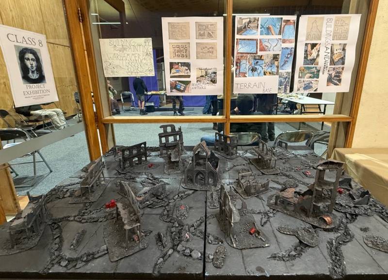Henry’s proposal to build a Warhammer terrain board was initially met with scepticism, but his passion carried him through. He designed and constructed a detailed, interactive board with movable scatter terrain and individually crafted building ruins, each requiring hours of work. His patience and persistence gave him new knowledge of construction techniques, tools, and materials.